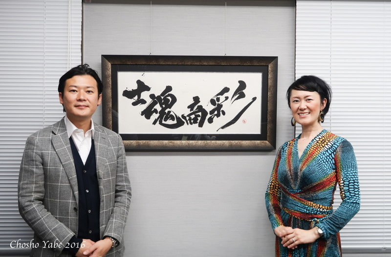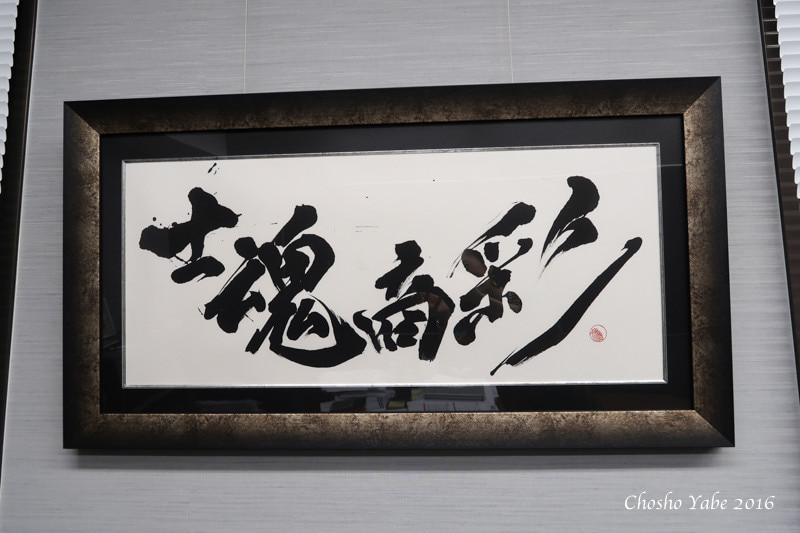 This four-character idiom is a creative variation of the traditional Japanese saying “Shi-Kon-Sho-Sai” (Samurai Spirit, Merchant Wit). However, the last character was intentionally changed to reflect the President’s personal philosophy and roots.