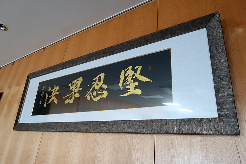 We were honored to create a significant piece for the Chairman’s Office of the Health Medicine Prevention Association, Niigata Kenshin Plaza. The commission called for the four-character idiom “Ken-nin Ka-ketsu”.