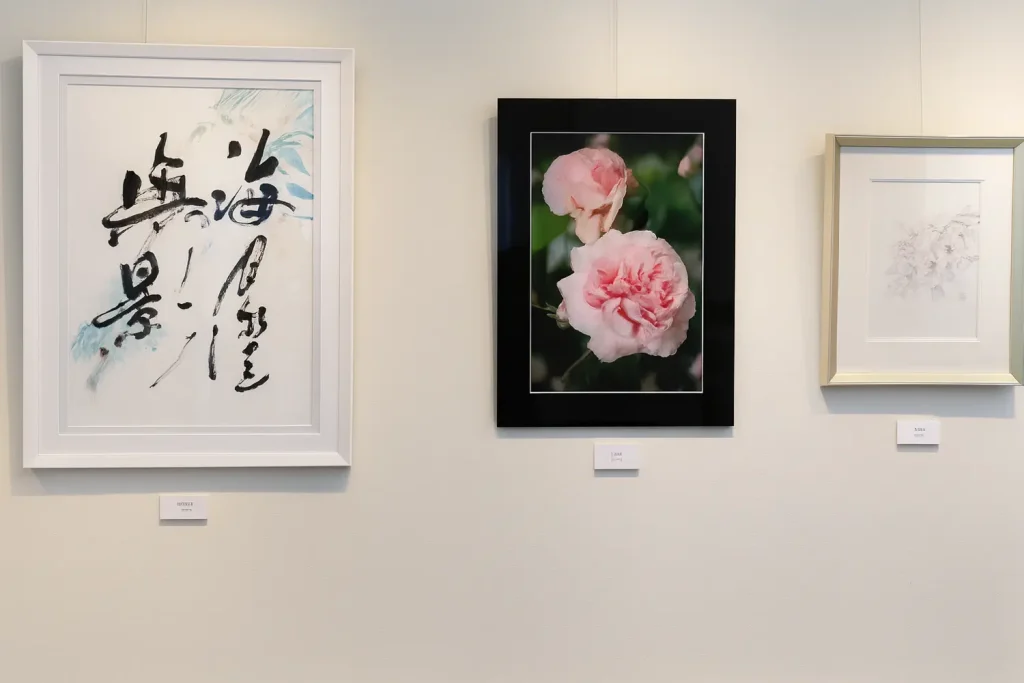 The concept was a beautiful dialogue between nature and art. The exhibition coincided with the blooming season of the rose garden at Gallery Masumi (Chosho Yabe’s private atelier). The vivid colors of the fresh roses in the garden were mirrored inside by a curation of Chosho Yabe’s smaller works, student pieces, and art photography of roses.