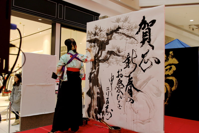 To celebrate the New Year, I held a series of “New Year’s Calligraphy Performances & Kakizome Workshops” at major shopping malls in the Tokai region.